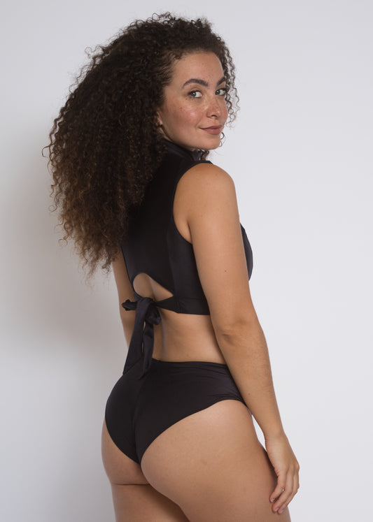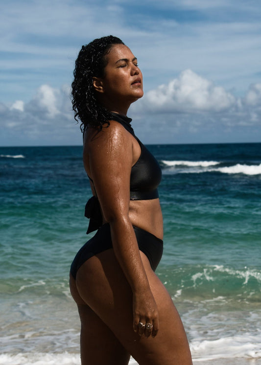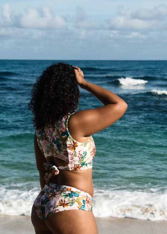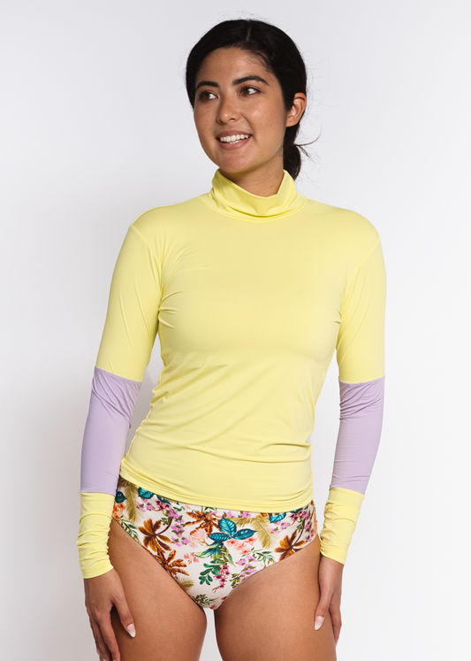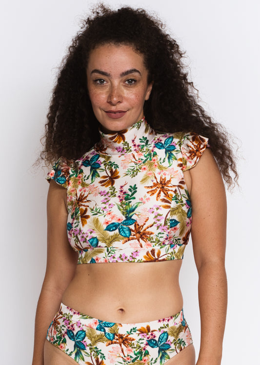 SUN QUEEN SWIM CROP TOP with Sleeves in Ocean Blue