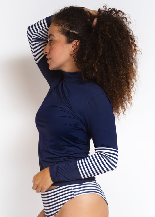 CATHERINE THE GREAT SWIM TOP in Navy Stripe with soft texture